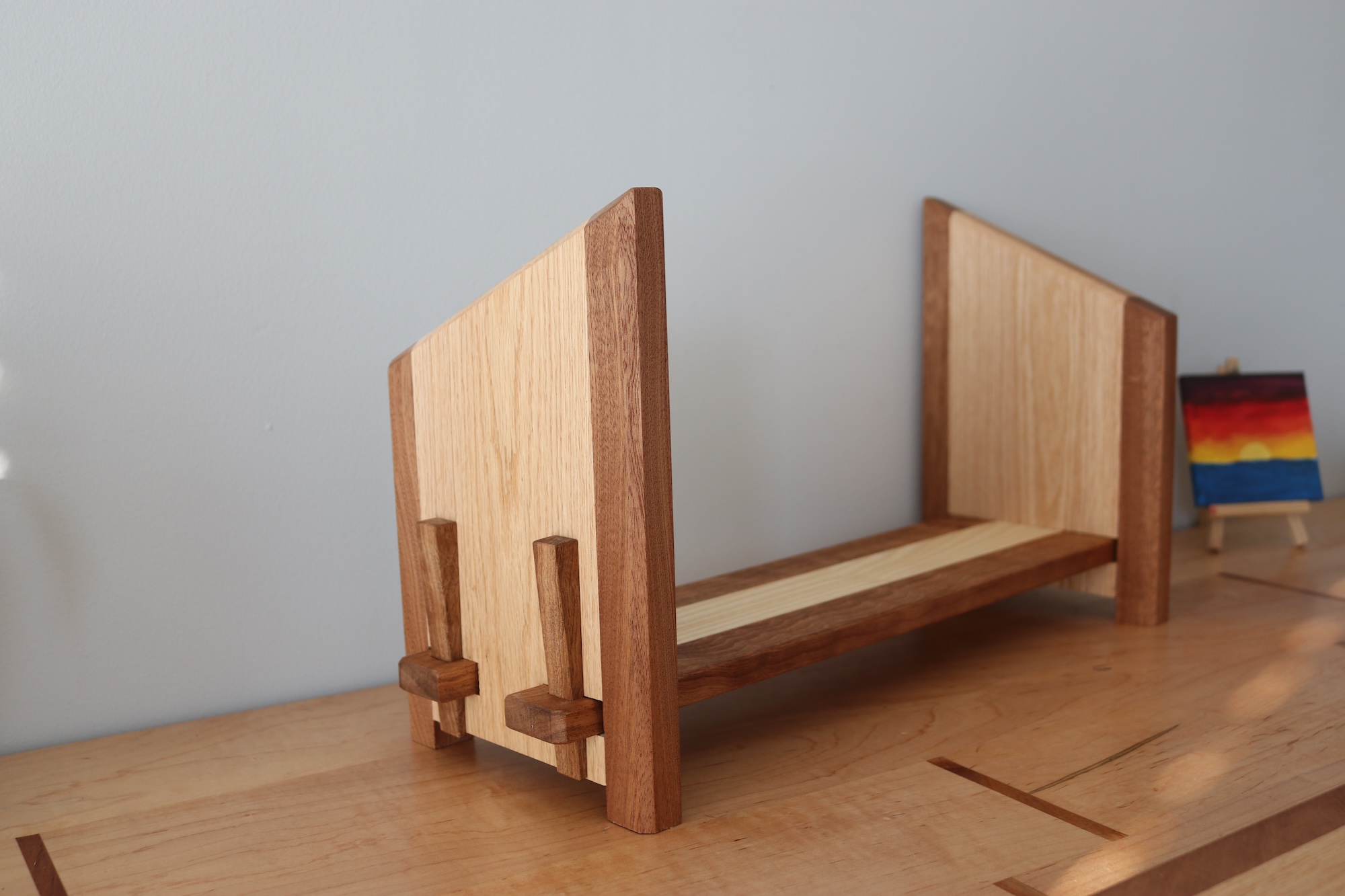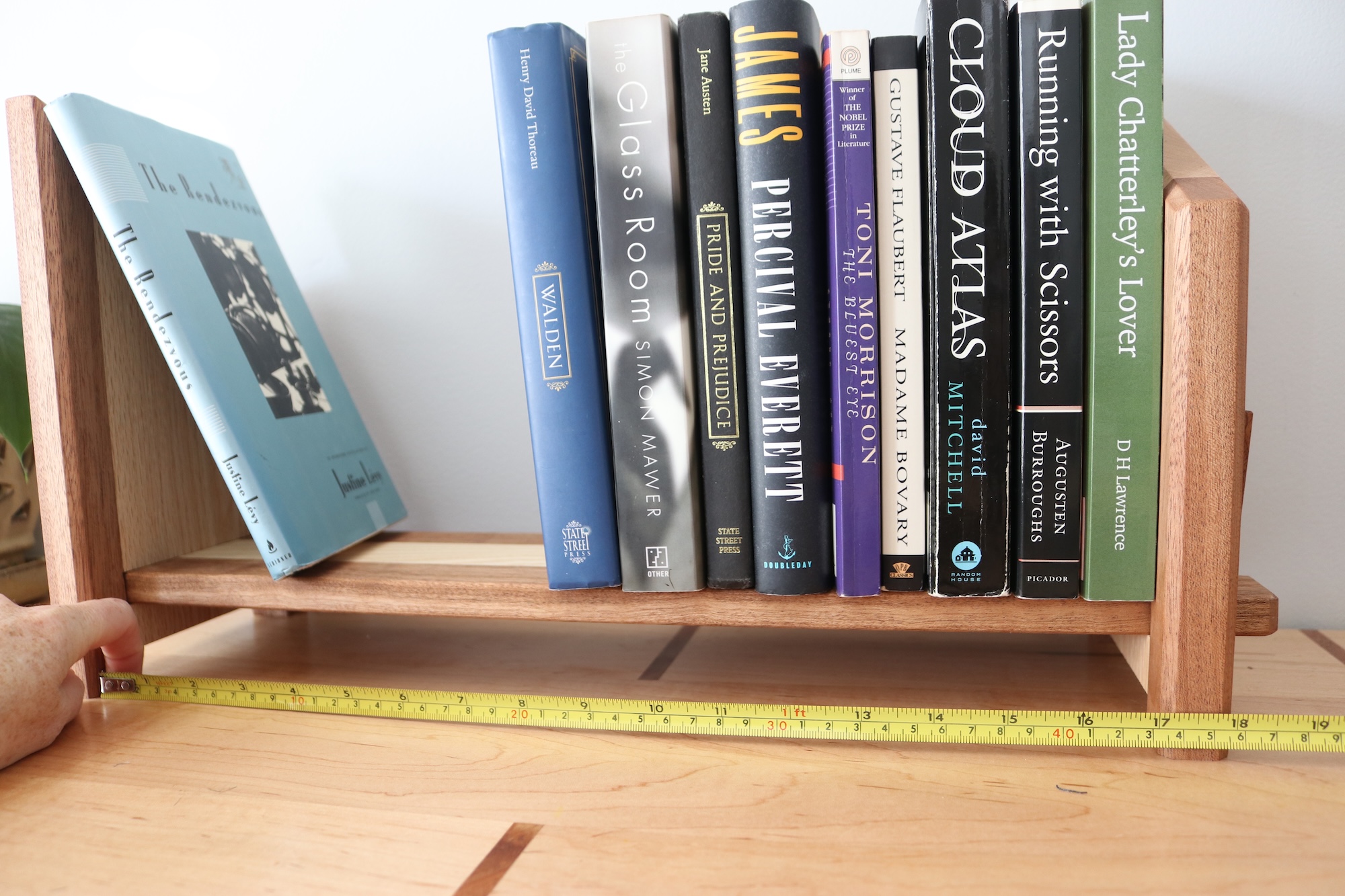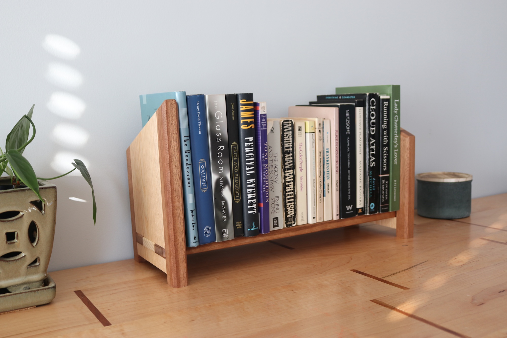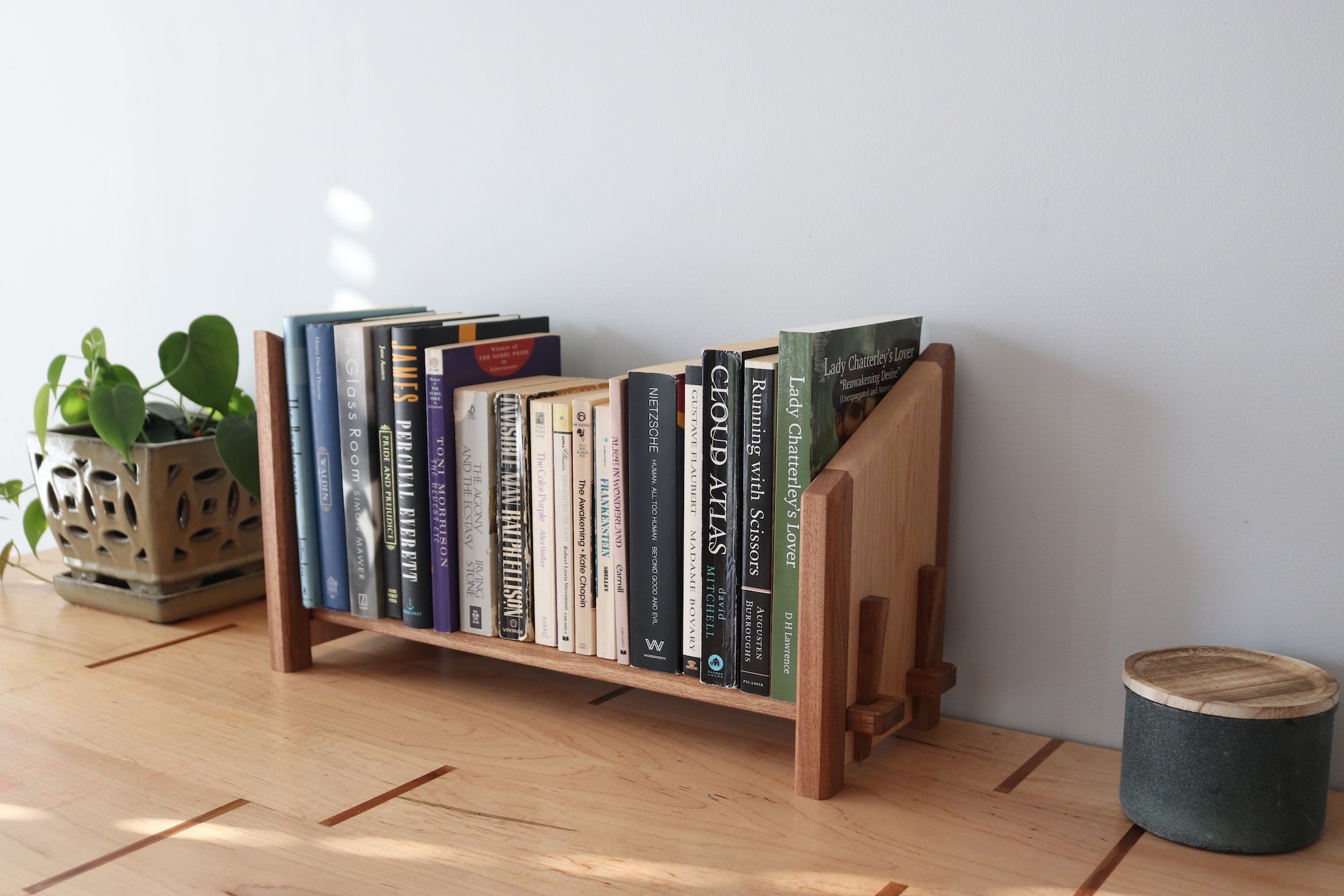Designed for readers who like things tidy—but flexible. This handcrafted tabletop bookshelf features one fixed bookend and one sliding bookend, allowing you to easily adjust the width to fit your current stack of books. Whether you’re organizing a few favorites or a growing collection, this shelf adapts as your needs change.