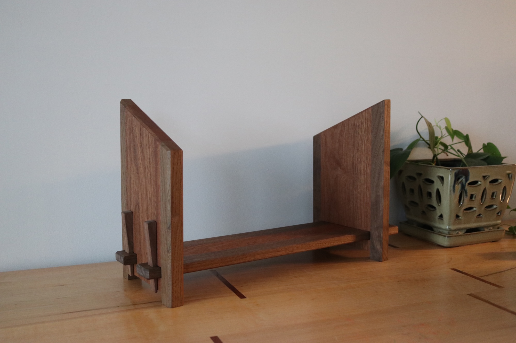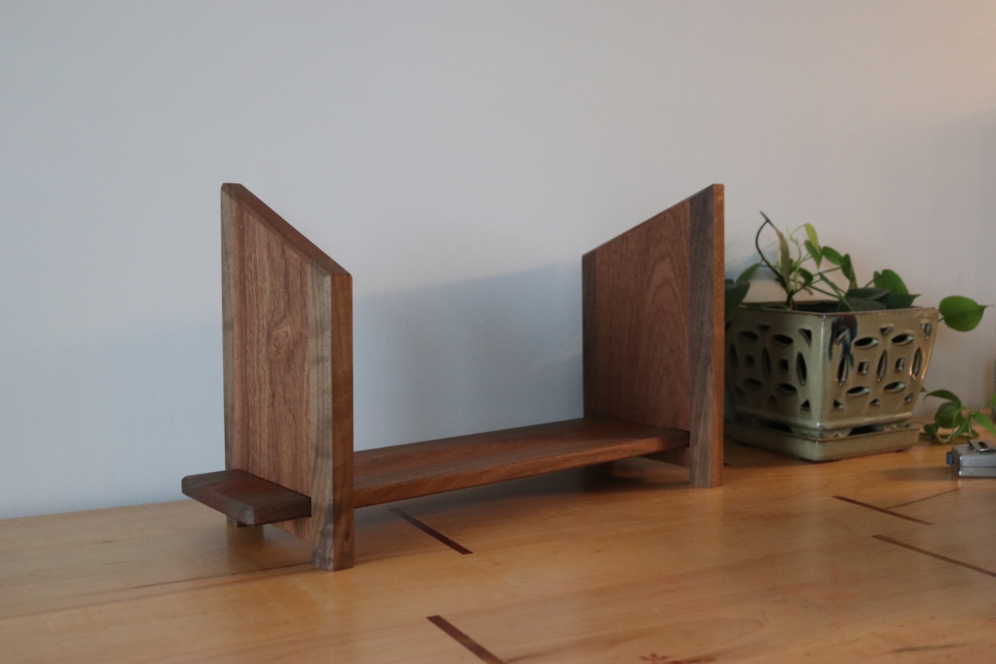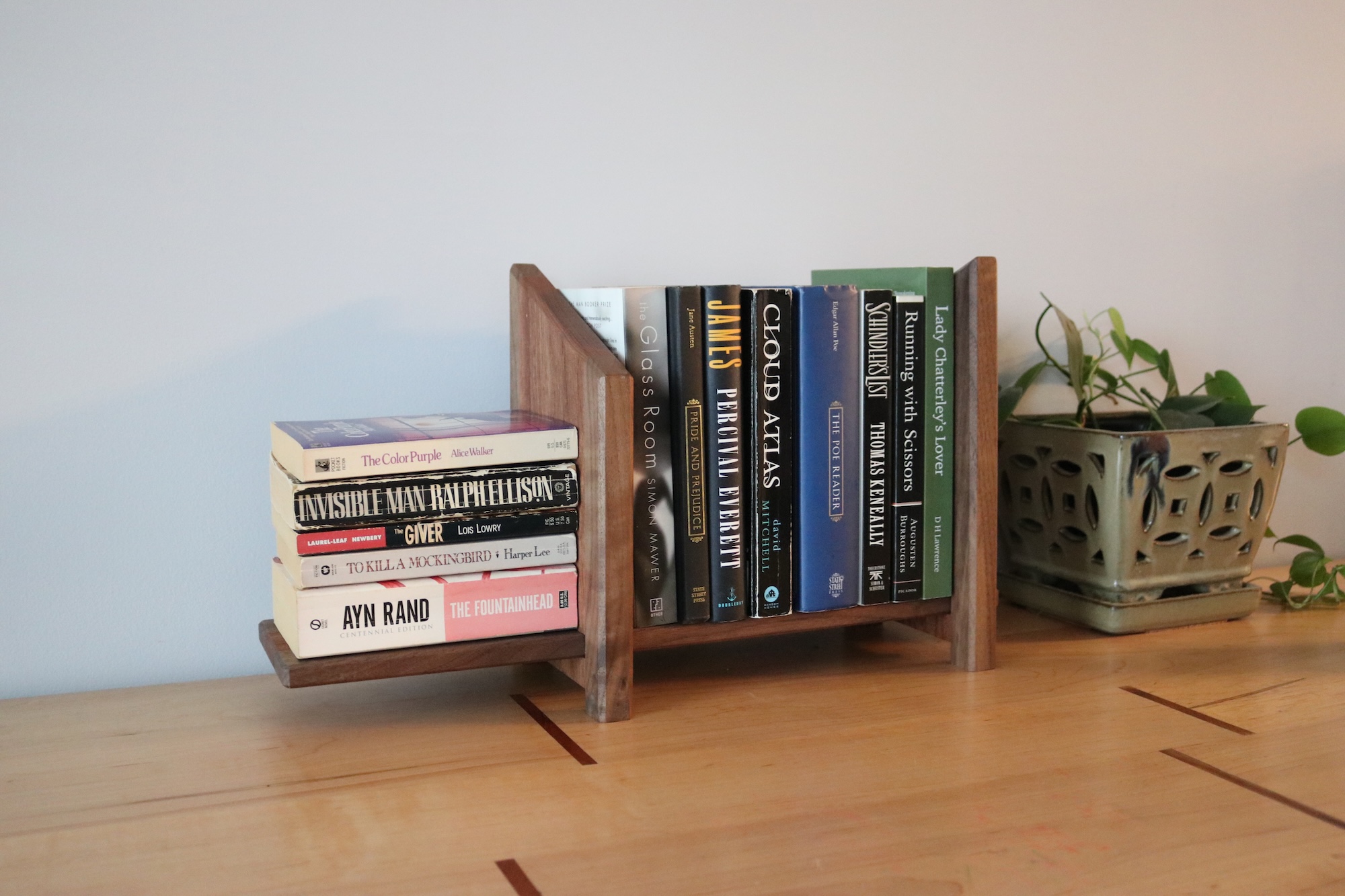 Designed for readers who like things tidy—but flexible. This handcrafted tabletop bookshelf features one fixed bookend and one sliding bookend, allowing you to easily adjust the width to fit your current stack of books. Whether you’re organizing a few favorites or a growing collection, this shelf adapts as your needs change.