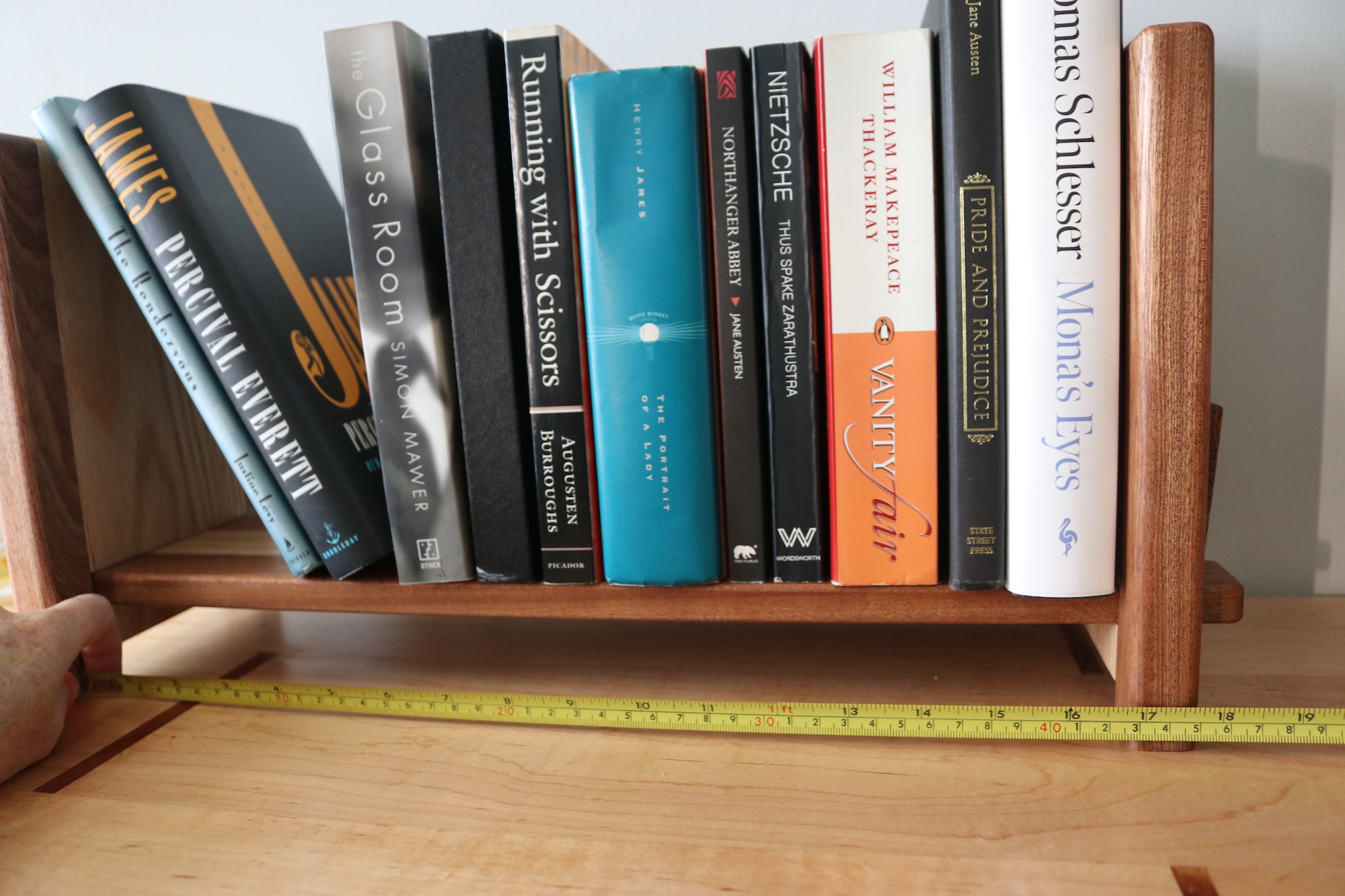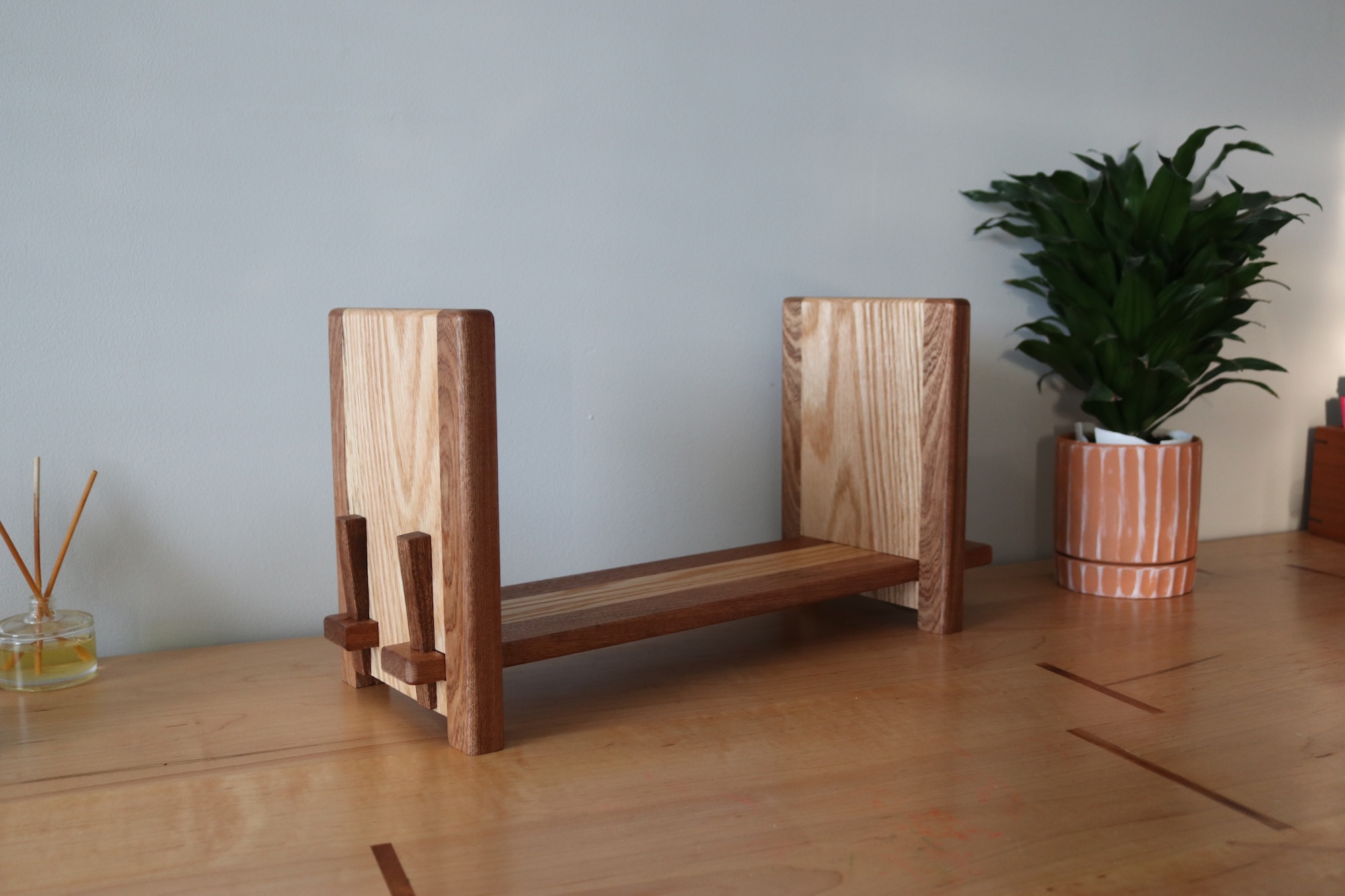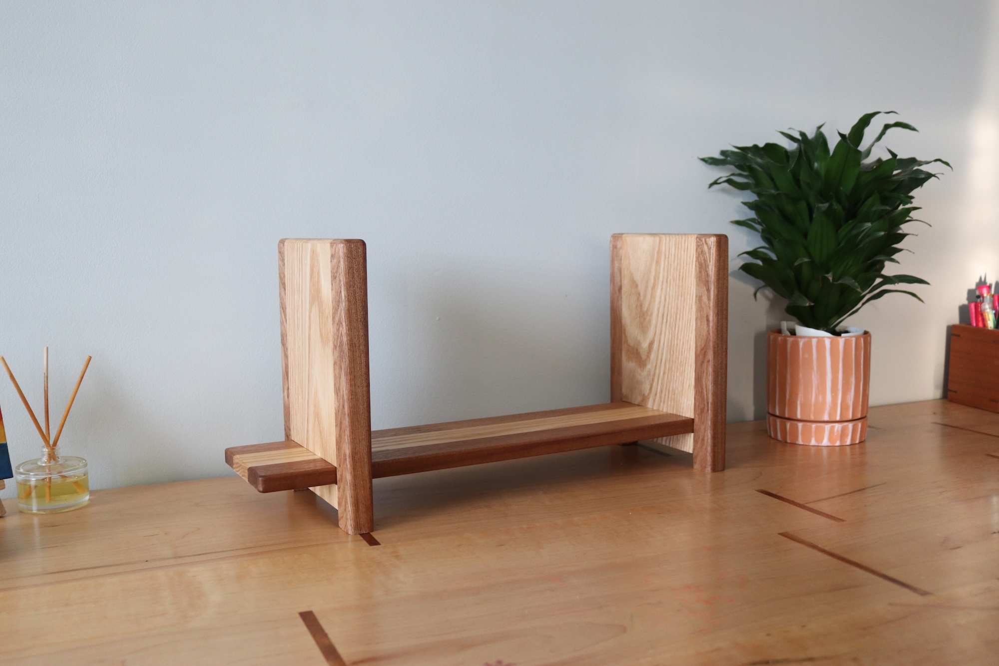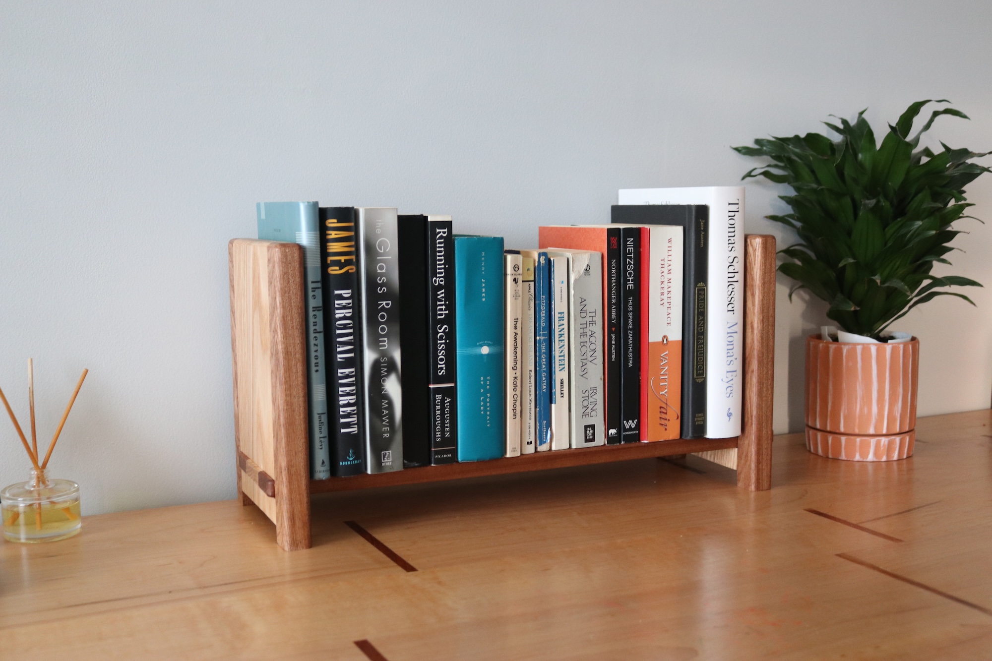 Designed for readers who like things tidy—but flexible. This handcrafted tabletop bookshelf features one fixed bookend and one sliding bookend, allowing you to easily adjust the width to fit your current stack of books. Whether you’re organizing a few favorites or a growing collection, this shelf adapts as your needs change.