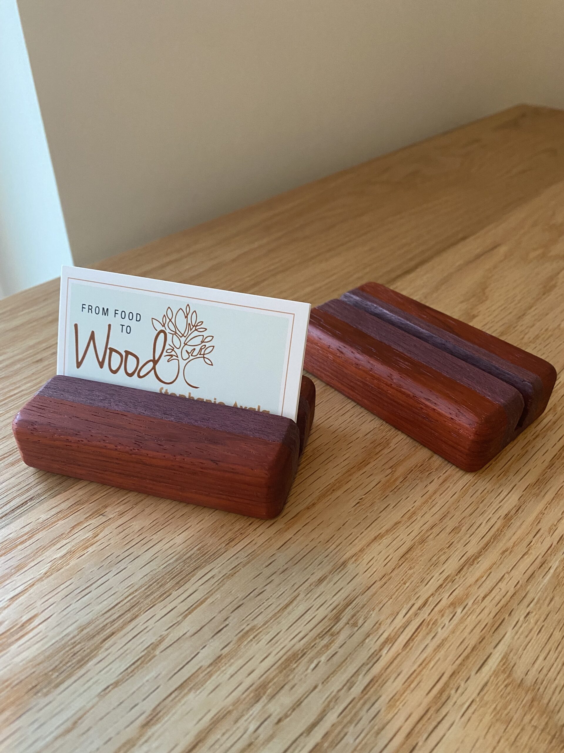 These business card holders are custom made so you can select the wood combo and size that you prefer.