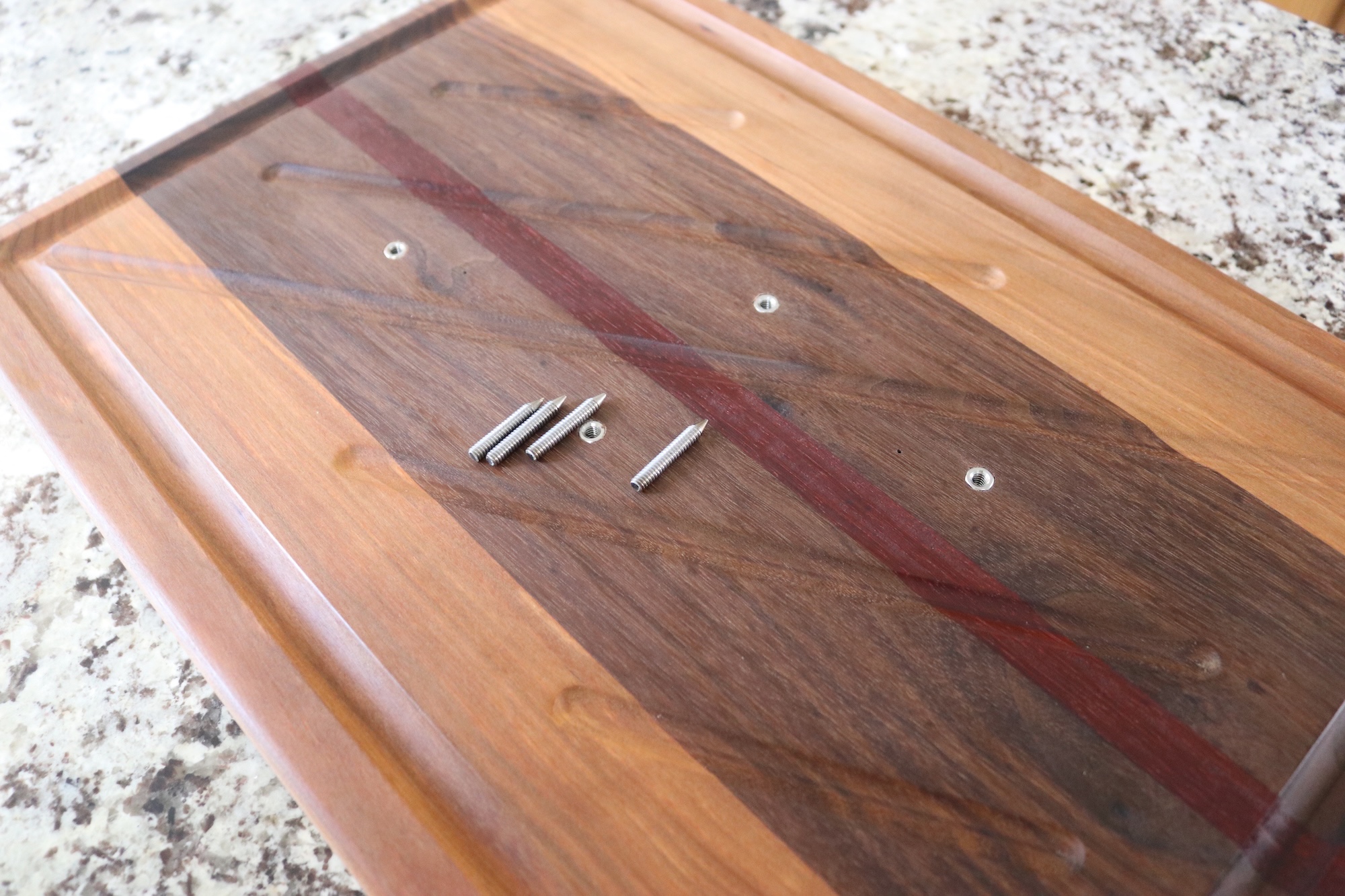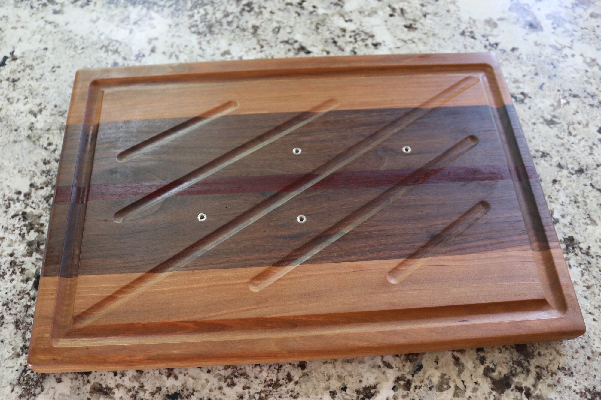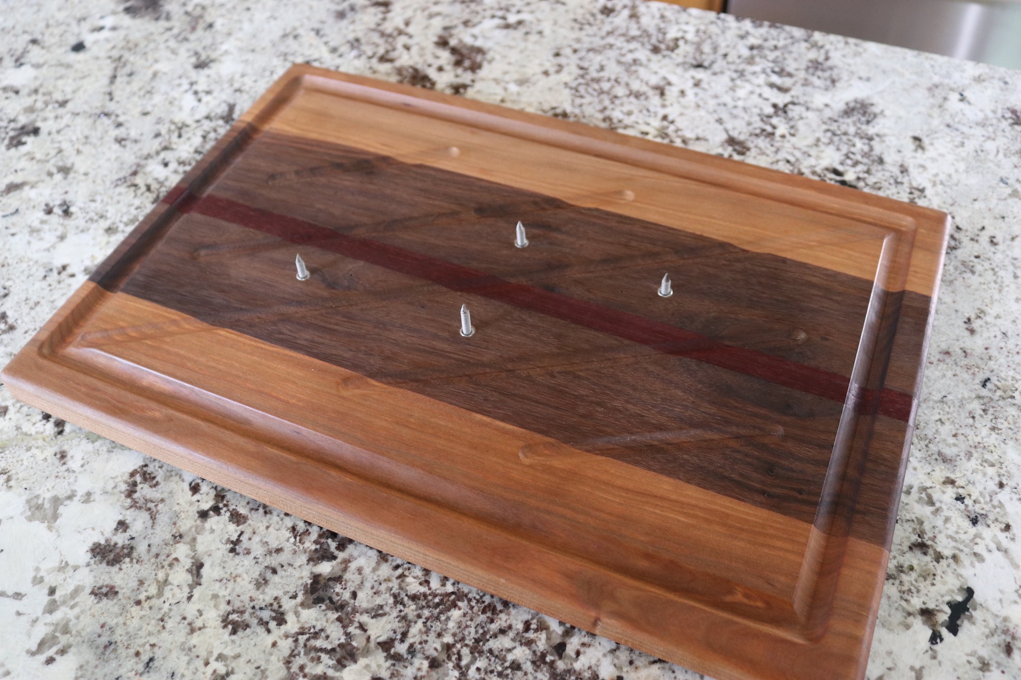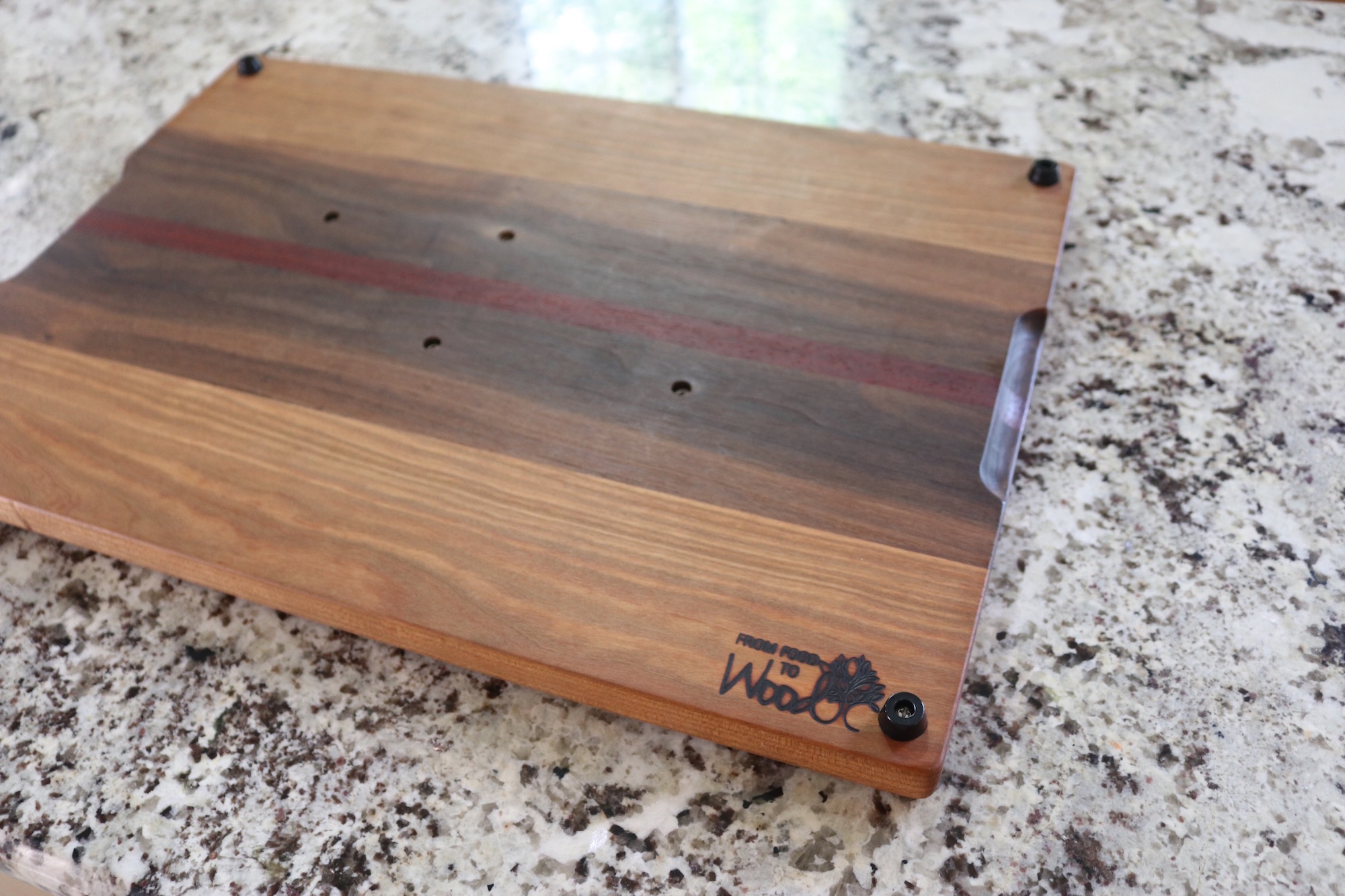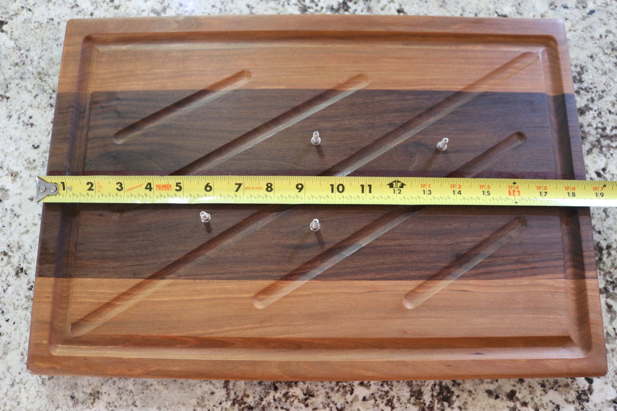 A routed juice groove around the perimeter captures excess juices, keeping your workspace clean and making it easier to collect drippings for gravy or sauces. The board is elevated on non-slip rubber feet, allowing airflow underneath and preventing moisture buildup on your countertop.
