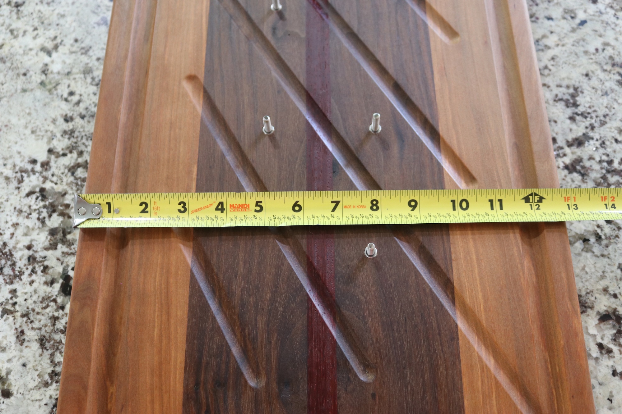 These boards are custom pieces (you get to choose the woods you prefer!) and take ~1 week to make before they are shipped so get your orders in before October! Photos shown are a couple boards sold.