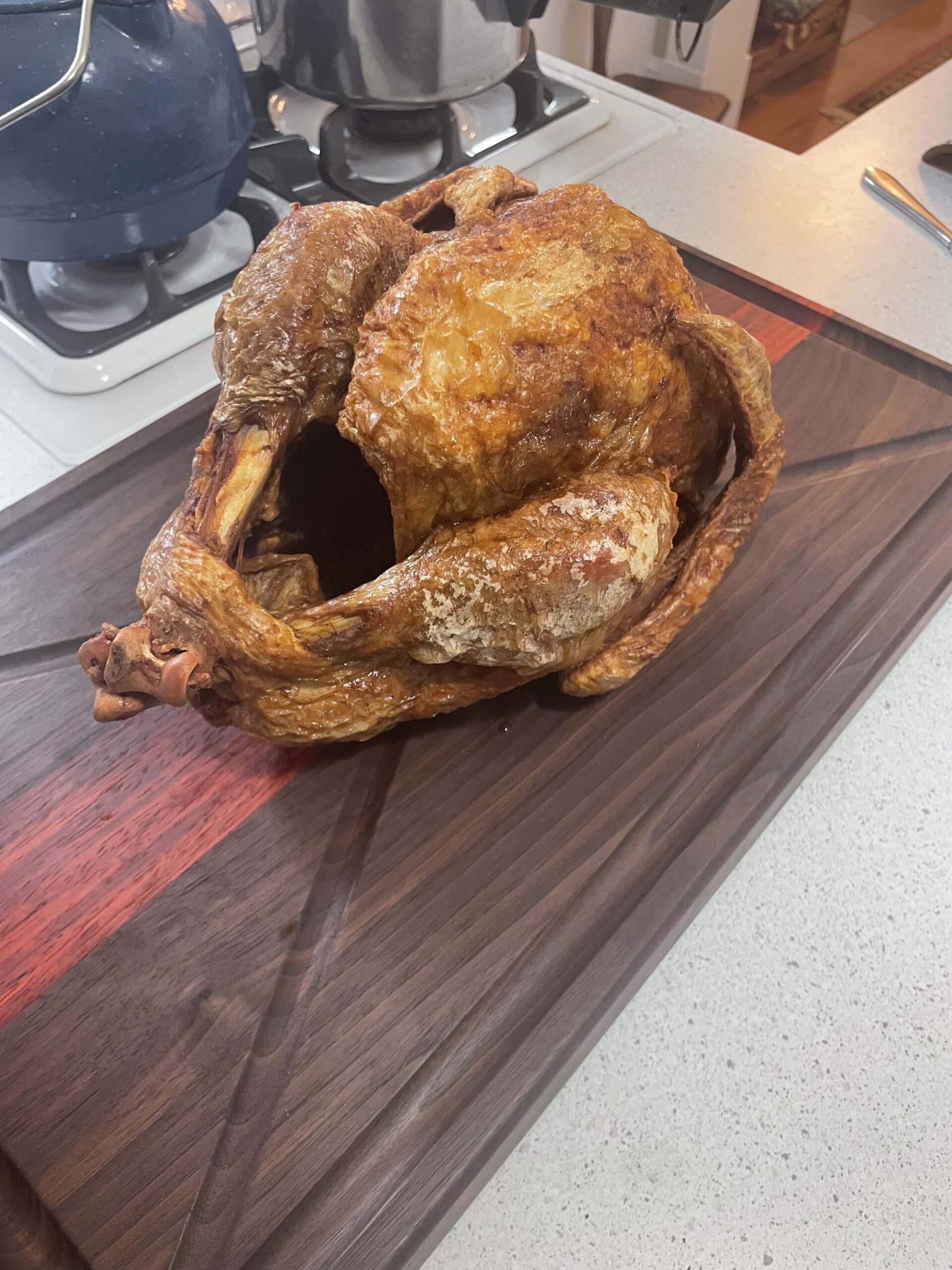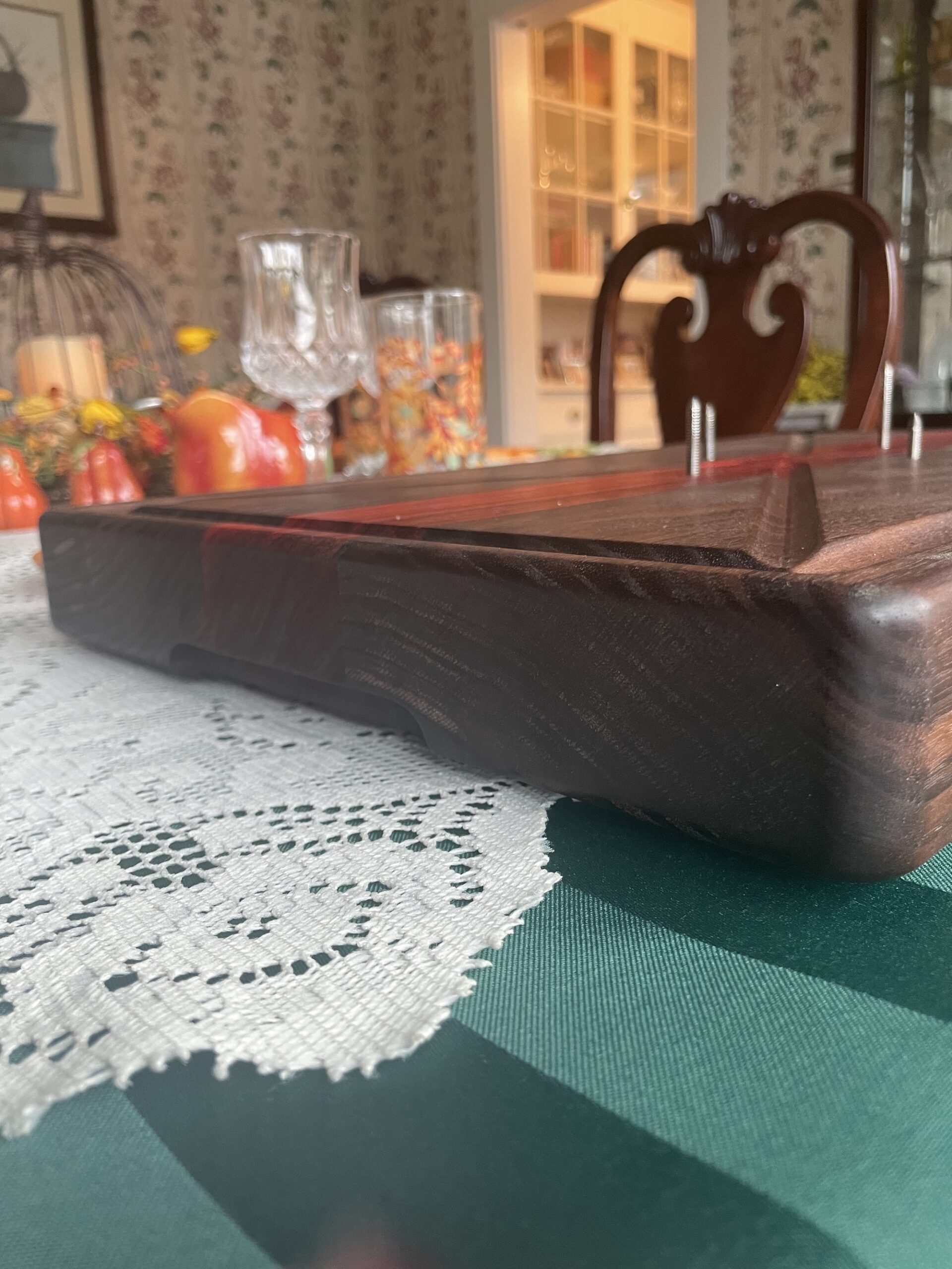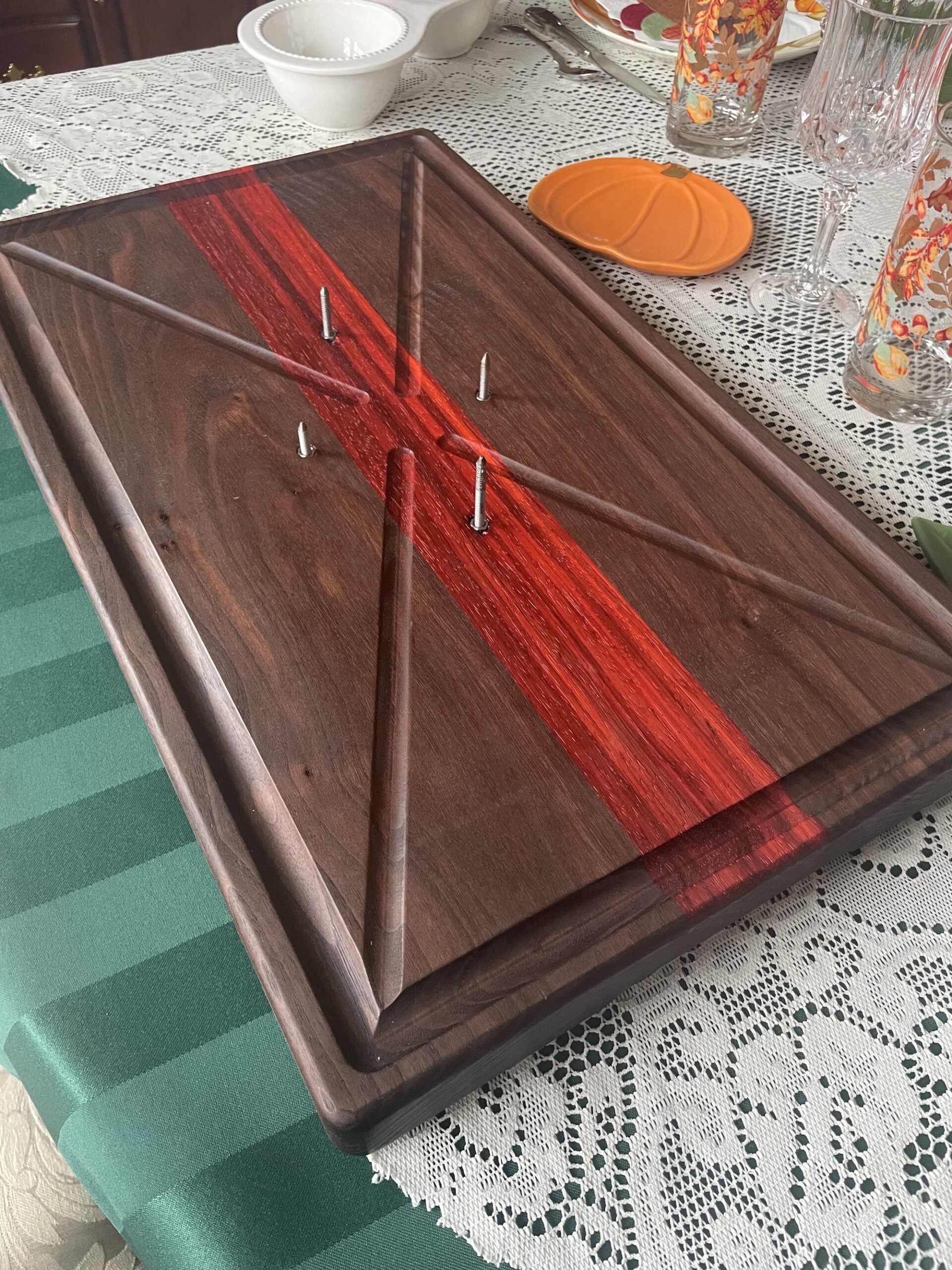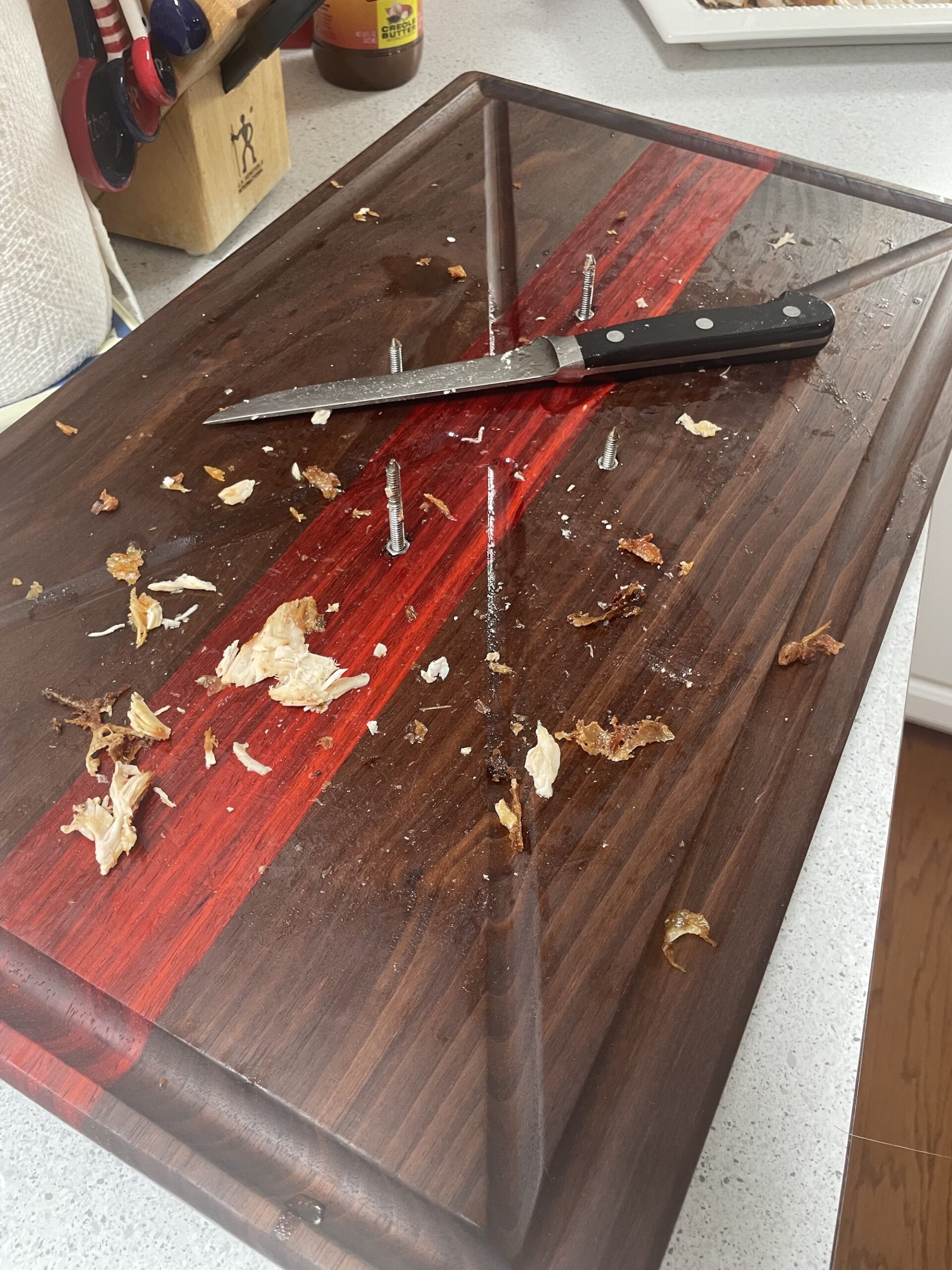 Designed for big jobs and messy moments, this handcrafted carving board is built specifically for carving turkeys, roasts, brisket, and other large cuts of meat—without slipping, sliding, or spilling all over your counter.