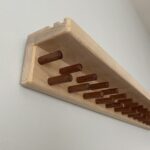 Slat-style headboard made from many beautiful hardwoods including Purple Heart, Walnut, Padauk, Maple, Oak and Cherry