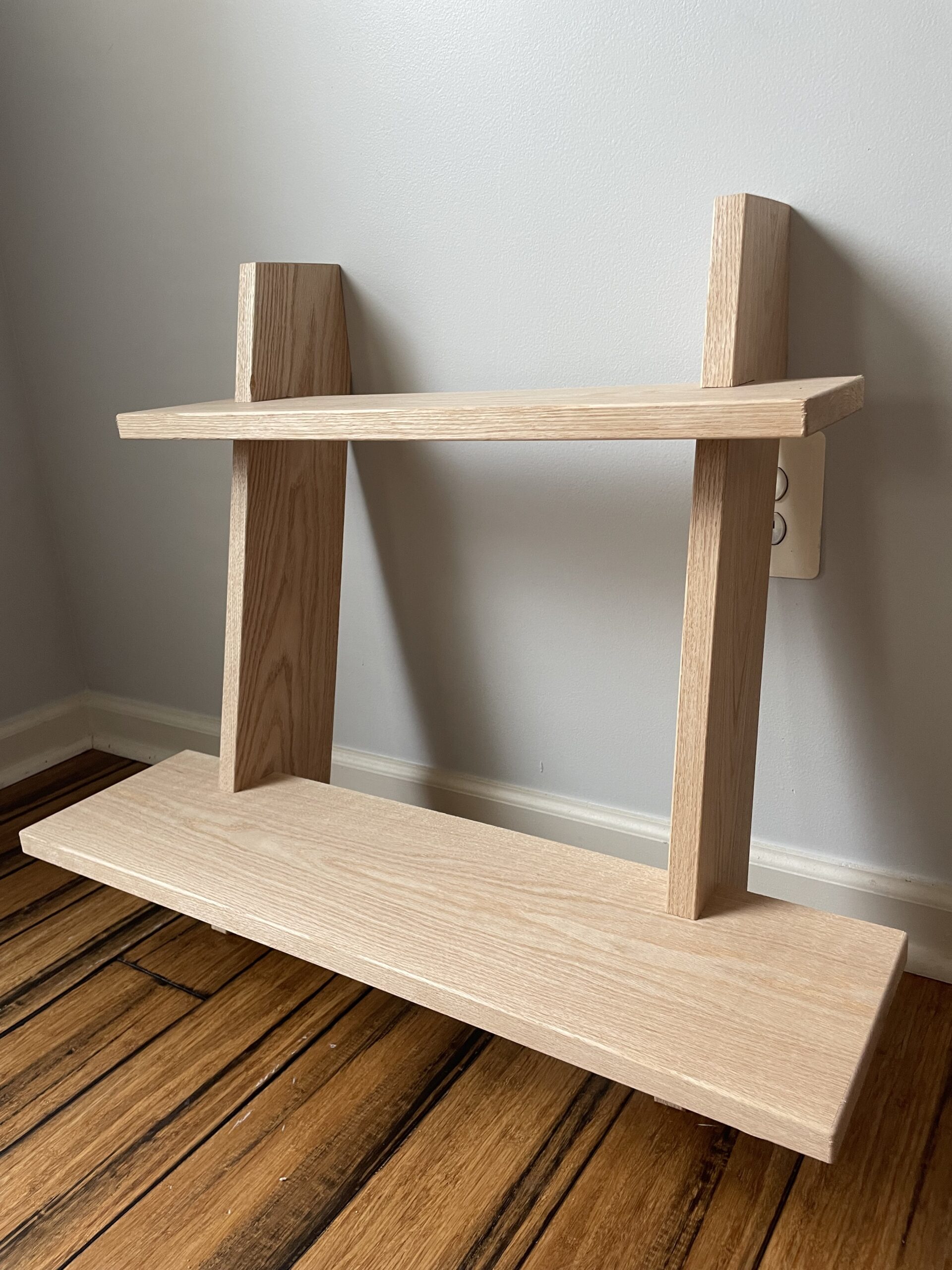 This desk of made of solid Red Oak and features two open shelves for additional storage.
