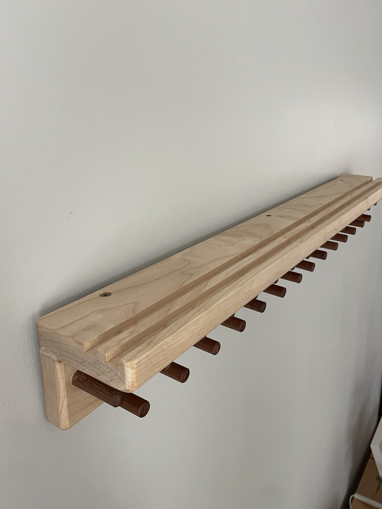 A kind customer that had purchased one of my desktop bookshelves came back to me with a request for a special letter tray for his office. The top two photos show my practice run made of maple, spell and cherry and the bottom two are the final product for him made of walnut and padauk with beautiful and elegant brass feet added.